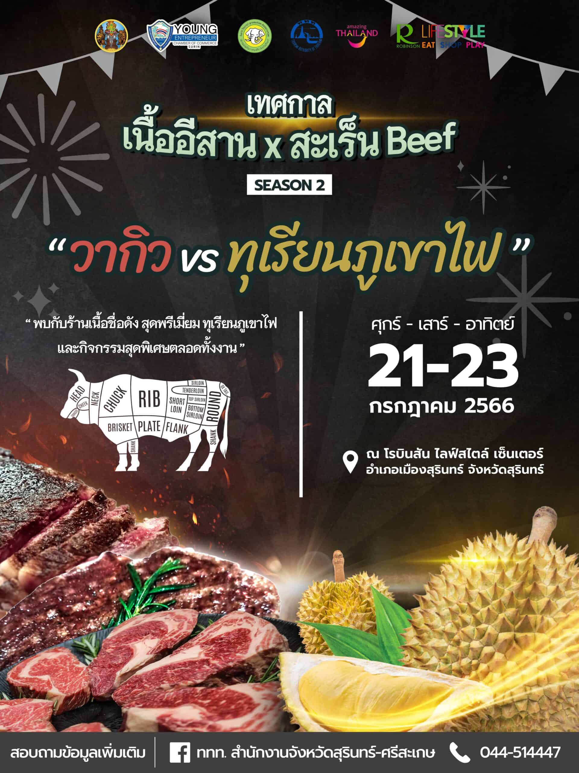 มาแล้วเด้อ! เทศกาลความแซ่บ เนื้ออีสาน X สุรินทร์ Beef ใน Season 2 “วากิว vs ทุเรียนภูเขาไฟ” เพื่อคนรักเนื้อเนื้อชั้นดี! ไม่ควรพลาดนะจ้า!