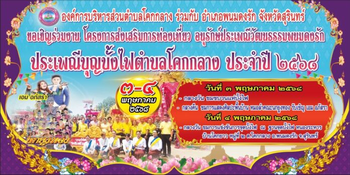 ถ้าพูดถึงเดือนพฤษภาคมในภาคอีสาน หลายคนต้องนึกถึง “บุญบั้งไฟ” ที่เต็มไปด้วยเสียงหัวเราะ ความสนุกสนาน และจิตวิญญาณแห่งความเชื่อ และปีนี้ ตำบลโคกกลาง อ.พนมดงรัก จ.สุรินทร์ ก็ขอเชิญทุกคนมาร่วมสืบสานวัฒนธรรม กับงาน ประเพณีบุญบั้งไฟตำบลโคกกลาง ประจำปี 2568 อย่างยิ่งใหญ่!
