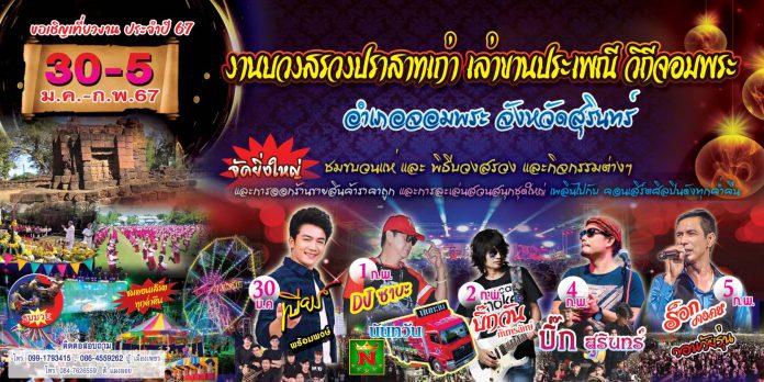 งาน “บวงสรวงปราสาทเก่า เล่าขานประเพณี วิถีจอมพระ” ประจำปี 2567 ณ บริเวณสนามอำเภอจอมพระ ต.จอมพระ อ.จอมพระ จ.สุรินทร์