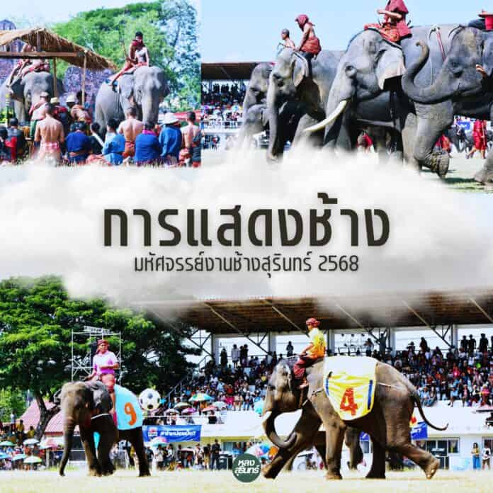 กิจกรรมในการแสดงช้าง ในงานมหัศจรรย์งานช้างสุรินทร์ ปี 2568 ที่ะจัดแสดงในวันที่ 22-23 พฤศจิกายน 2568 ณ สนามแสดงช้าง อำเภอเมืองสุรินทร์ จังหวัดสุรินทร์